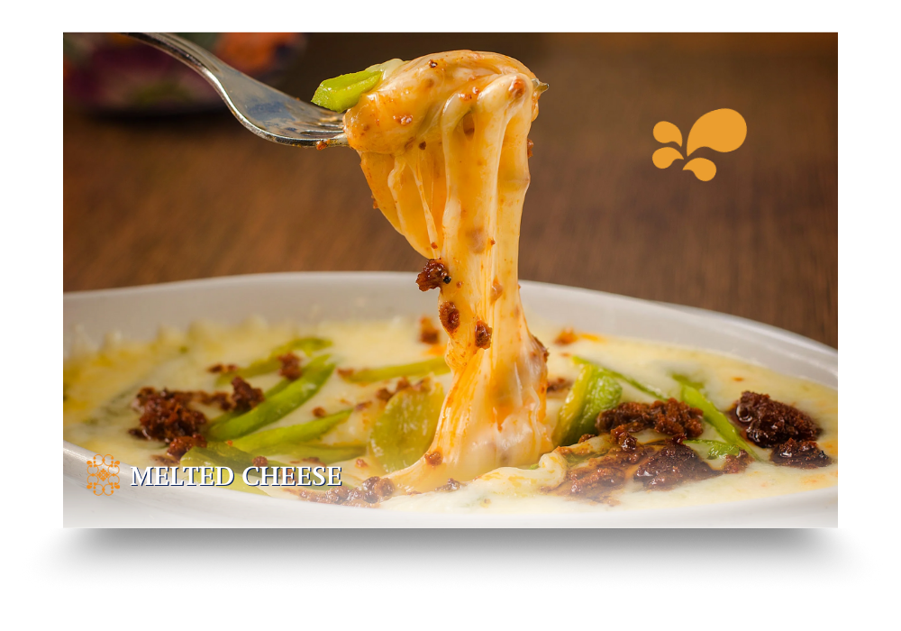Melted banquet cheese with your choice of favorite ingredients, 1 included: bacon, chorizo, ham, rajas, or mushrooms.